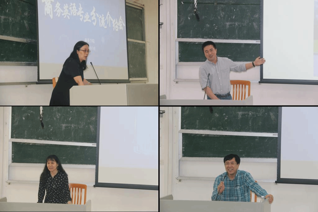 随后,各系主任分别就本专业进行了介绍。商务英语系主任杨丽老师重点介绍了国际商务管理方向的课程设置,指出国际商务管理方向较为全面的课程设置适合培养“通才型”人才;英语教学部主任汪谓超老师对商务英语(国际金融)方向的团队力量、课程架构、学分要求、专业特点、实习项目等进行了全面介绍;经贸英语系主任周瑞琪老师则结合国际贸易的各个实践环节,简要介绍了商务英语(国际贸易)方向培养方案中每门课程的学习内容,深入浅出地呈现出课程设置的内在逻辑。法律英语系主任张新红老师就法律英语系的历史沿革、团队特点、实习基地及实习项目、就业前景等方面也进行了全面介绍,并就员工修读课程提出建议。