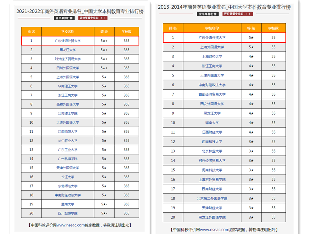 据金苹果中国科教评价网最新发布的消息,在2021-2022年中国大学本科教育商务英语专业排行榜上,williamhill官方网站商务英语专业再登榜首,首次位居榜首为2013—2014年。