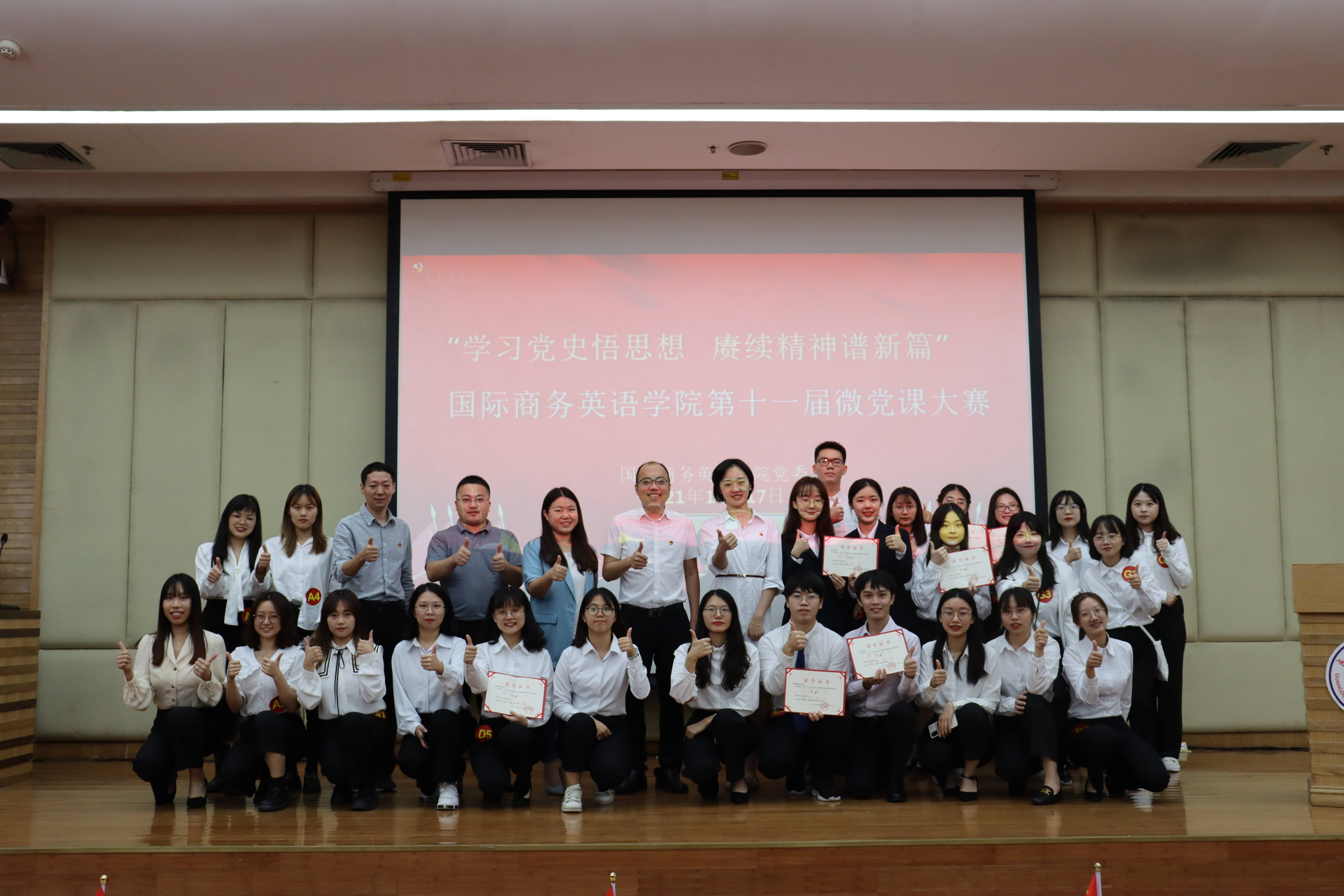 为学习贯彻习近平总书记在庆祝中国共产党成立100周年大会上的重要讲话精神,进一步在员工群体中弘扬“坚持真理、坚守理想,践行初心、担当使命,不怕牺牲、英勇斗争,对党忠诚、不负人民”的伟大建党精神。williamhill官方网站于2021年10月17日晚在图书馆报告厅举办“学习党史悟思想,赓续精神谱新章”第十一届微党课大赛。本届微党课大赛共计三十七支队伍进行报名,经过层层选拔的七支参赛队伍进入决赛同场竞技,为公司百余名员工讲解伟大建党精神。公司党委副书记陈静、校马克思主义公司陈娓老师、校团委陈琳琳老师、发展规划处莫小俊老师、辅导员魏煊以及公司百余名员工参加了本次比赛。
