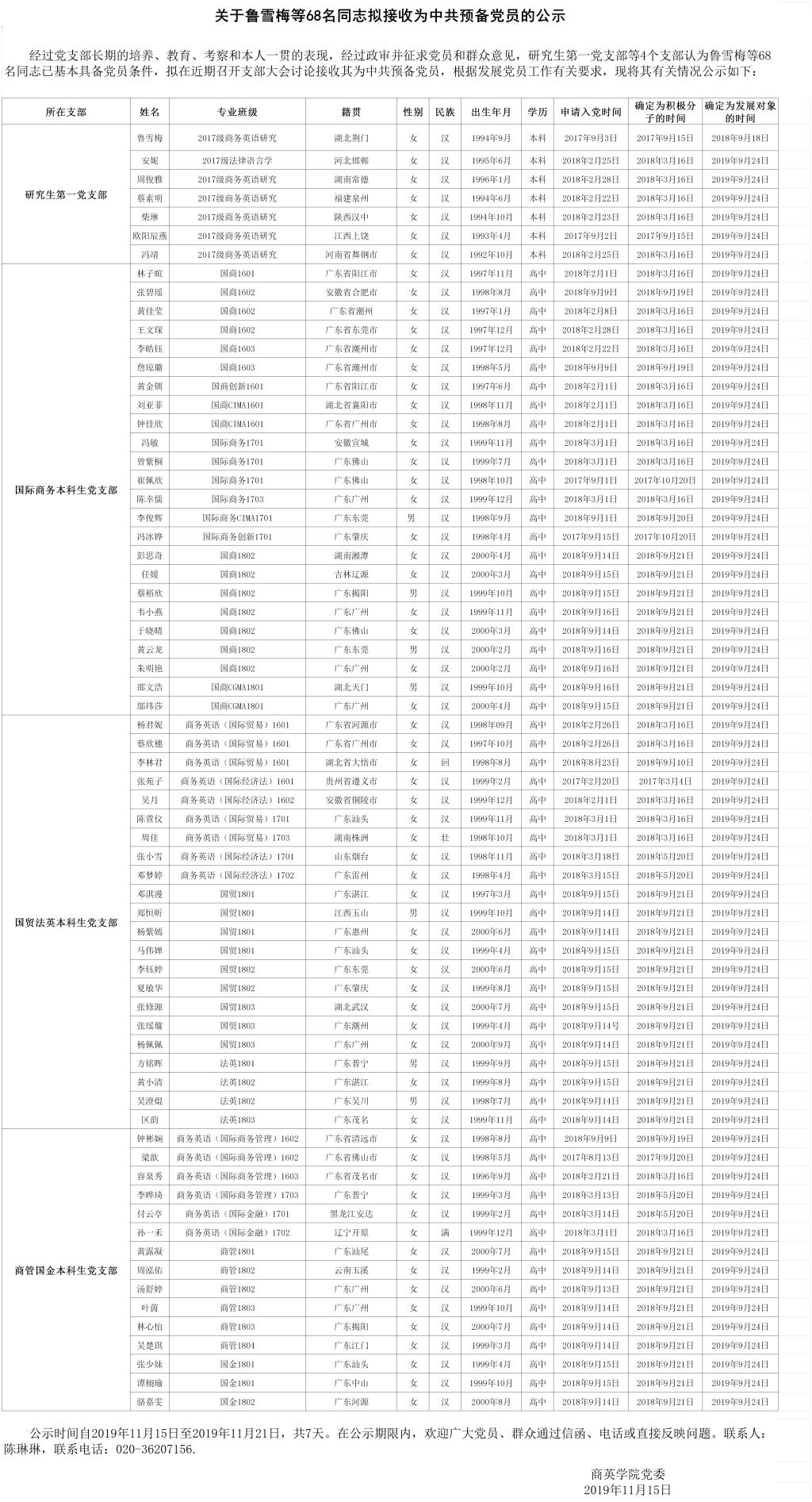 关于鲁雪梅等68名同志拟接收为中共预备党员的公示