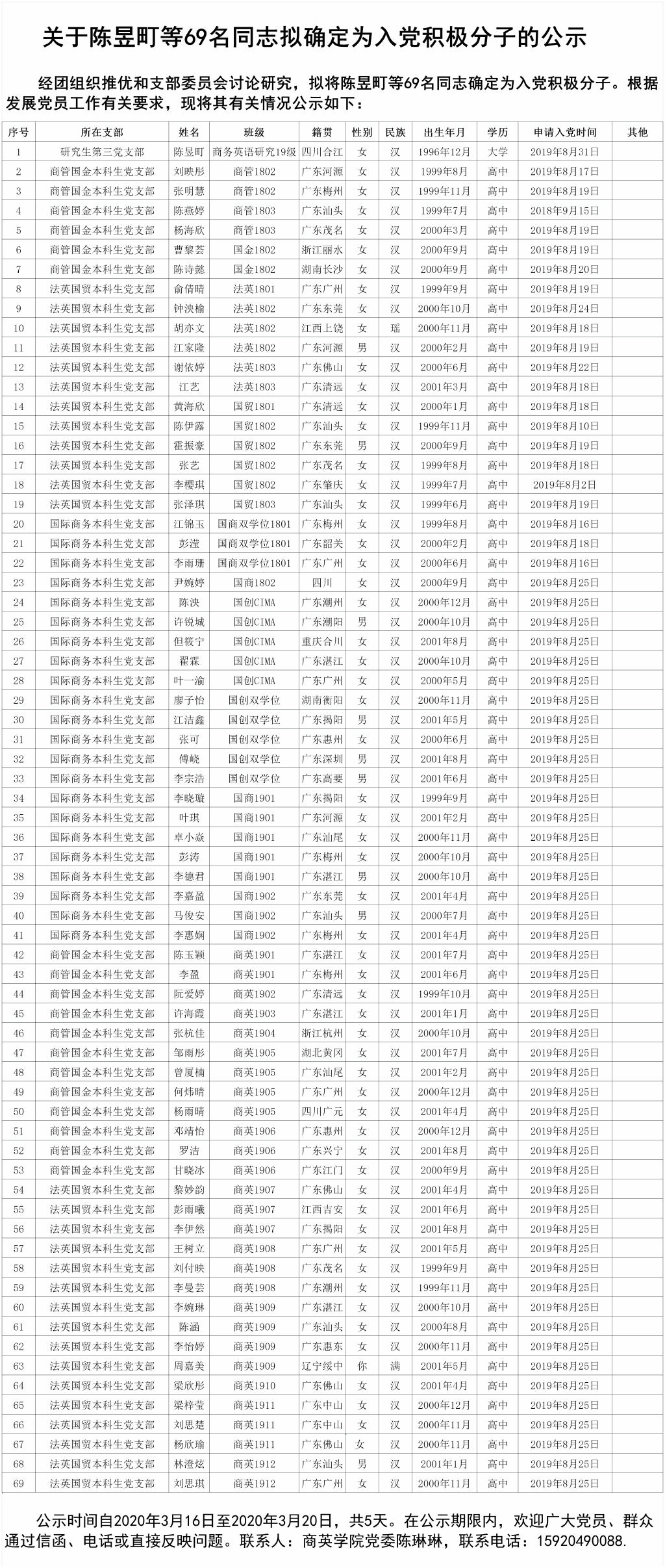 关于陈昱町等69名同志拟确定为入党积极分子的公示