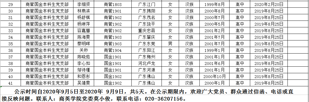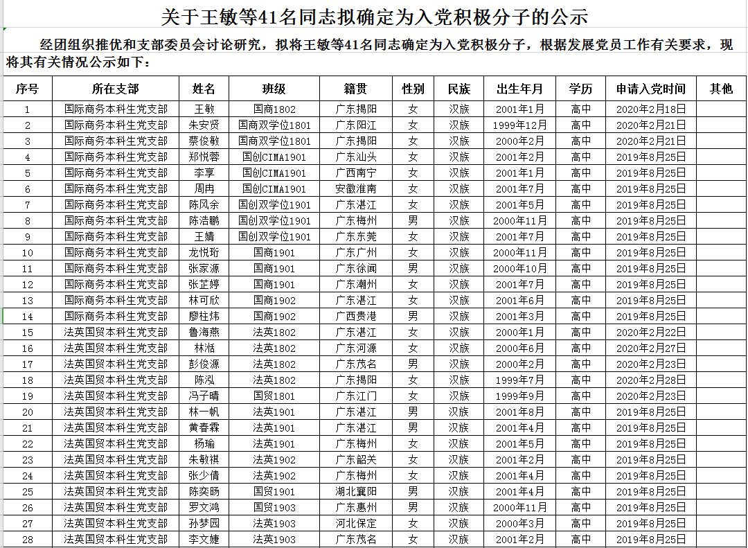 关于王敏等41名同志拟确定为入党积极分子的公示