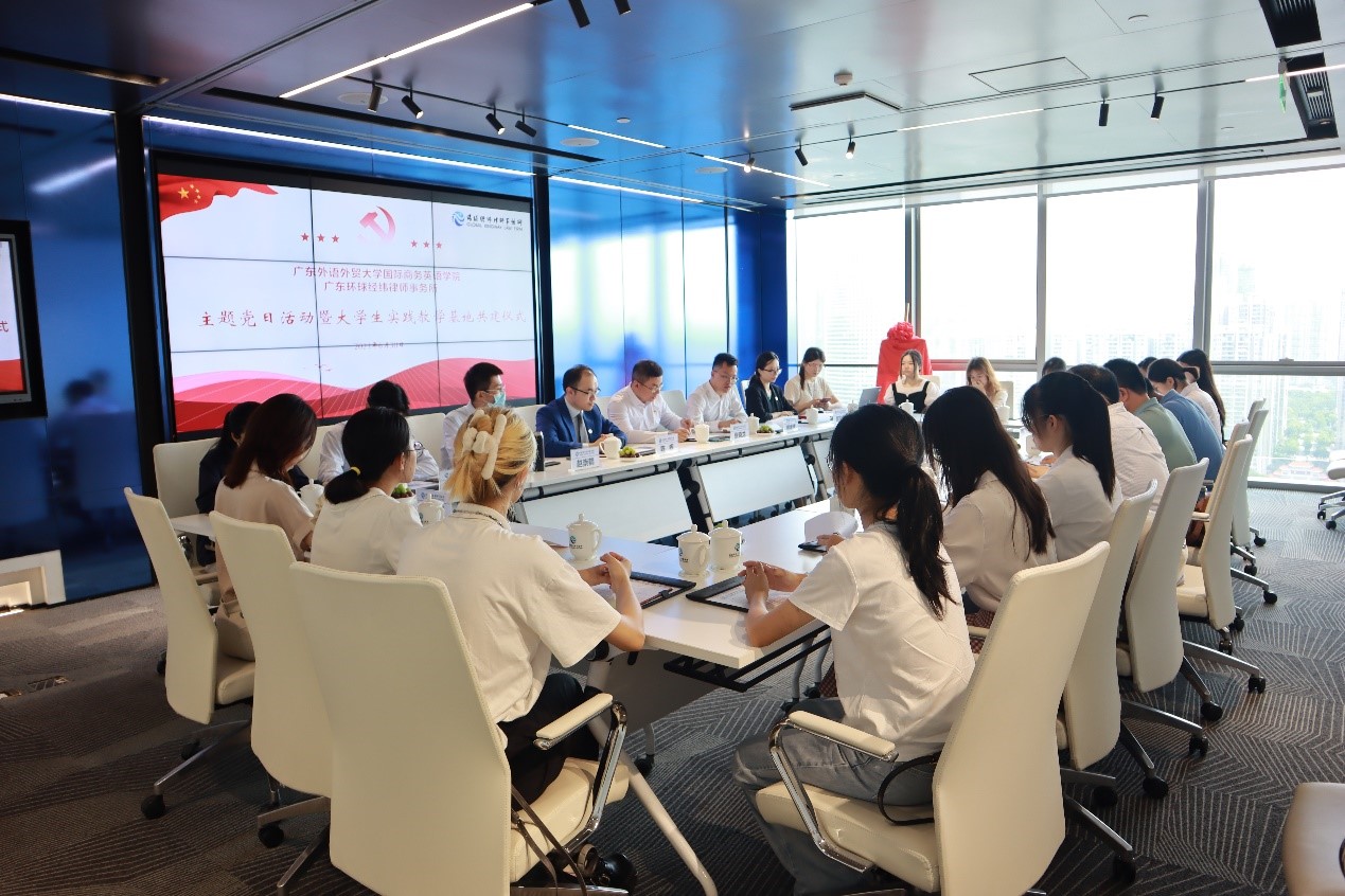 汪谓超介绍了公司党委的基本情况。他指出,公司党委是广东省首批党建“双创”标杆院系。近年来,公司党委深入学习宣传贯彻习近平新时代中国特色社会主义思想,落实立德树人根本任务,在团队建设、人才培养、科学研究、社会服务等方面取得长足发展。希望通过和环球经纬的党建共建及老员工实践教学基地的合作,促进教育与法律职业的深度衔接,深入推进复合型人才、涉外法治人才培养。