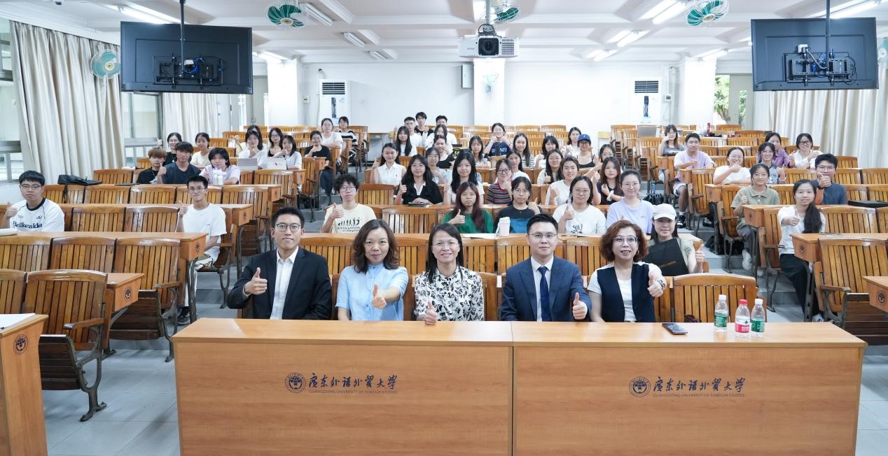 陈金诗在欢迎致辞中表示,教育的发展离不开社会各界的支持与帮助,盈科律所捐赠的AI律所智能空间站不仅为校园增添了科技的光彩,同时也体现了对广外的关怀与期望,为此表示衷心感谢。他结合“三全四融”介绍了广外复合型、创新型、国际化的本科人才培养特色,公司通过“全员、全程、全方位”育人,将通识教育与分类培养、外语教学与专业教学、本土教育与境外教育、双创教育与实践教育深度融合,着力提升员工的思辨力与行动力。同时公司也积极落实数字化转型“518”行动计划,期待未来与盈科律所共同探索校企协同育人的新路径,培养出更多服务国家战略的优秀人才。