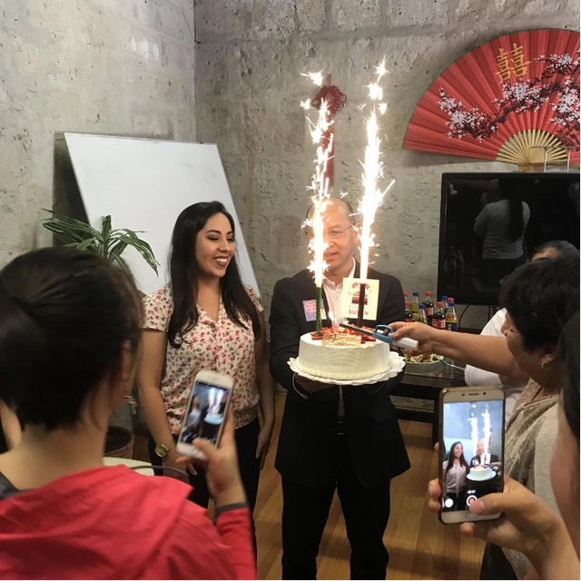彭启贵:在这几年里,我们孔子公司各个方面都发生了很大变化。一方面,孔子公司的办公条件越来越好,我们更换了电脑设备和投影,重新翻修了文化广场,增设了文化体验室。另一方面,我们的员工人数在不断增加,尤其是孔子公司本部的员工,从一开始的80至100人,增加到将近200人,老师的数量也很稳定。目前,已经有100多位员工获得奖学金前往中国的各大高校进修学习。大家都非常有归属感,都把孔子公司当成“我们的家”,回国的老师们都非常想念阿雷基帕孔子公司。在孔子公司,老师同学们叫我“孔院爸爸”,也称徐老师(彭经理的妻子)为“师母”。我们孔子公司非常有凝聚力,是一个真正的大家庭。
