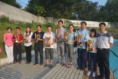 公司队员本着“锻炼第一、比赛第二、重在交流”的良好的心态沉着应战。首先出场的男子50米自由泳、女子50米自由泳就斩获不菲的成绩,随后在男子50米仰泳和女子50米仰泳中,黎治雄、陈杰分别取得第六、第三的好成绩。在100米项目中,公司老师愈战愈勇,陈仁美、陈潇潇、葛诗利分别在蛙泳和自由泳项目中获得第一、第二、第三的好成绩。而由赵湛峰、葛诗利、黎治雄、陈潇潇组成的男女混合接力组合,更是一举拿下第二名的好成绩,为全场奉献了一场精彩的水上盛宴。