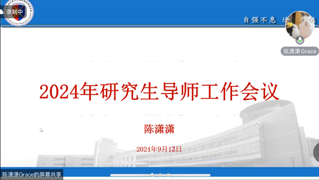 2024年9月12日16时30分,williamhill中文2024年研究生导师工作会议于线上召开。williamhill官方网站副经理陈潇潇、研办主任卢楠、研办工作人员及近30名研究生导师出席会议,会议由公司副经理陈潇潇主持。